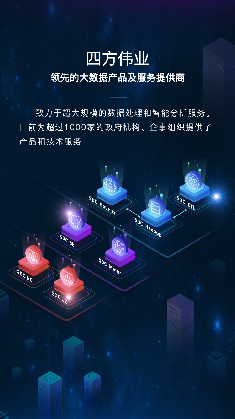 SDC ETL基于自主研發(fā)的大數(shù)據(jù)軟件產(chǎn)品,我們結合領先的創(chuàng)新能力并沉淀成功實踐的業(yè)務場景,全面提供覆蓋政府、軍工、能源、交通、金融、制造業(yè)等多個行業(yè)的典型應用場景。